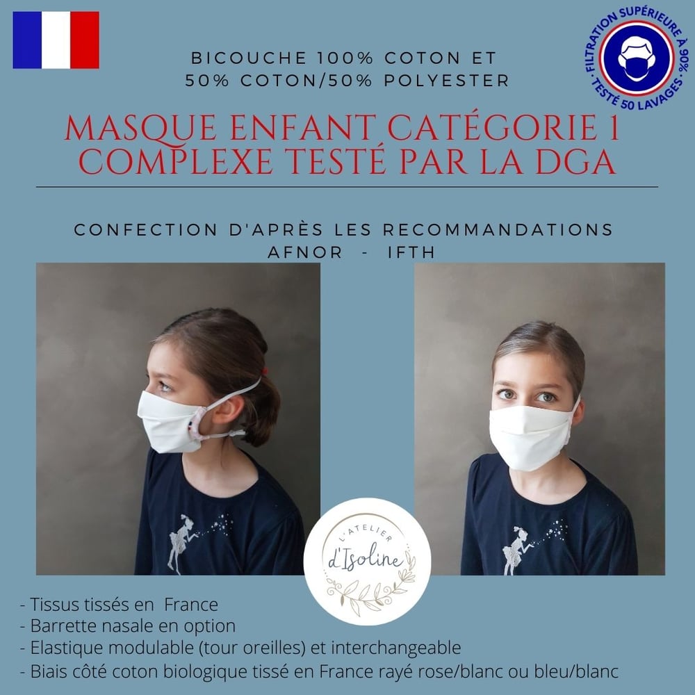 Masque Tissu Enfant "grand public filtration supérieure à 90%" de Catégorie 1 FRANCAIS