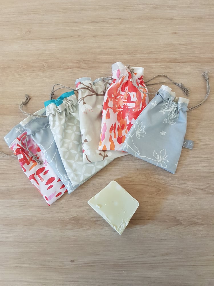 Pochon en tissu enduit pour savon solide, shampoing ou goûter